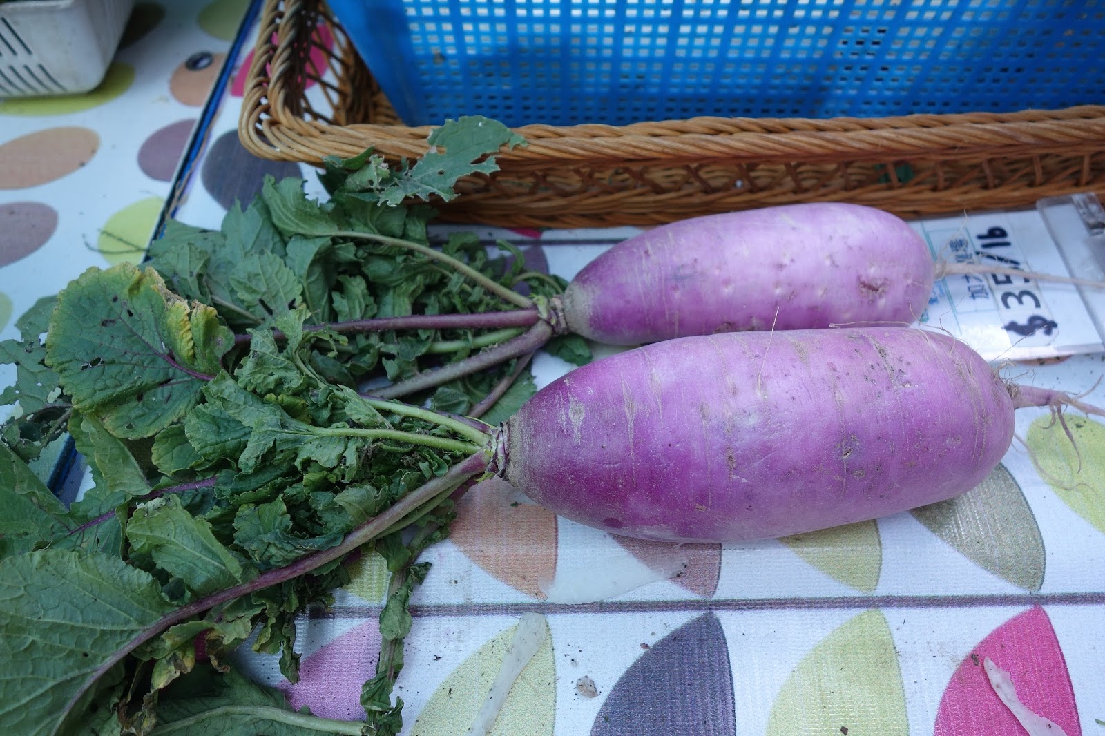 除了彩虹鯛,有些農產品亦色彩繽紛。蘿蔔四色俱全:青蘿蔔、白蘿蔔、紅蘿蔔之外還有少見的紫蘿蔔。紅菜頭已經奪目,旁邊的金菜頭更為吸睛。